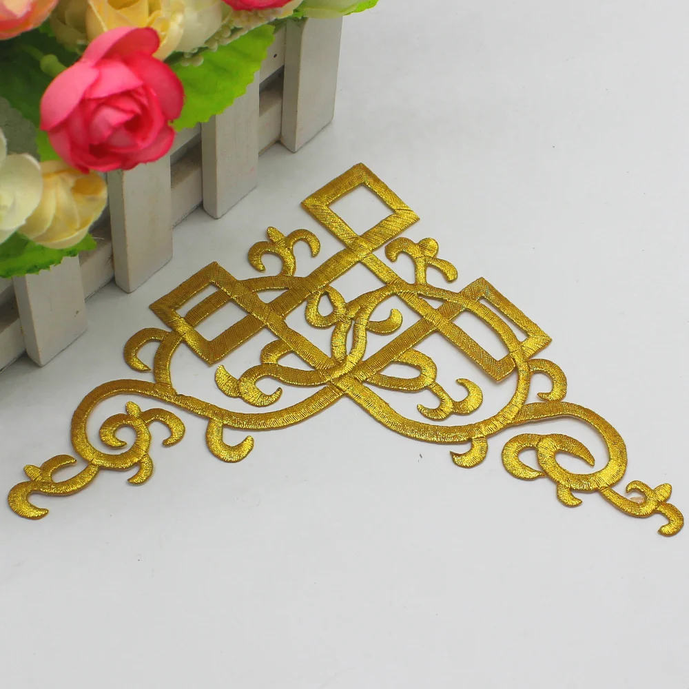 Нашивки с аппликацией сделай сам, золотые вышитые нашивки, кружевные нашивки для костюмов для косплея, аксессуары для одежды, 15,5*15,5 см