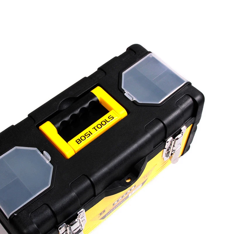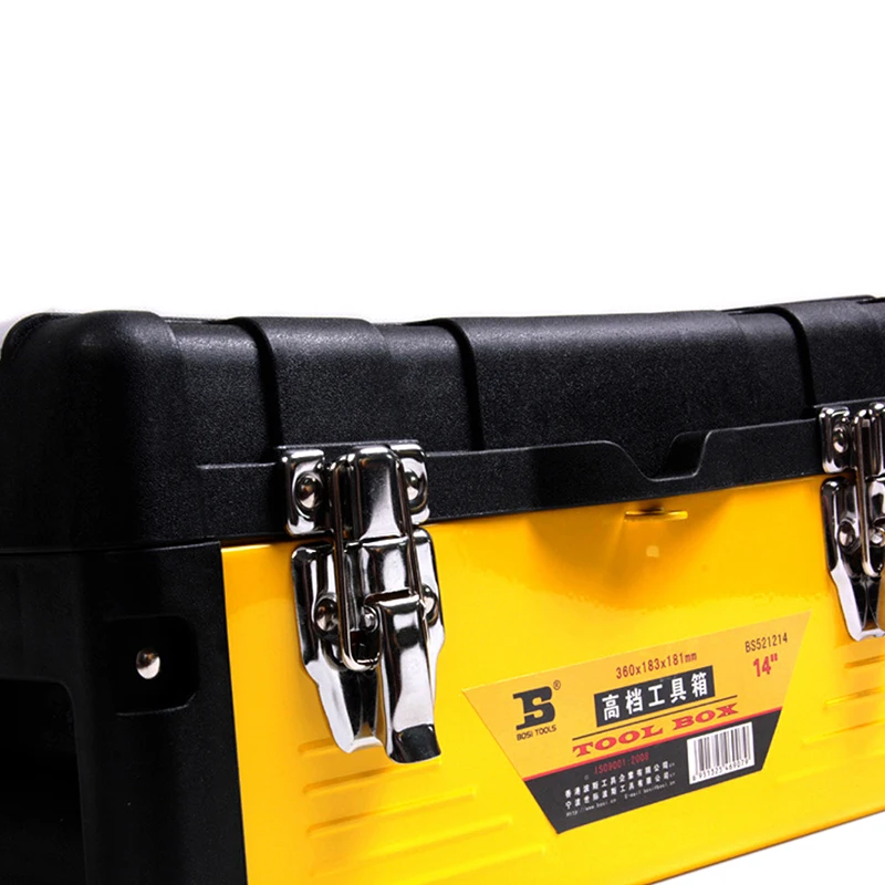 Корпус коробка сделана из 0,8 мм стальная пластина холодной прокатки и высокопрочного пластика PP, ручка коробка сделана из новый бренд АБС-пластик. Металлический замок.