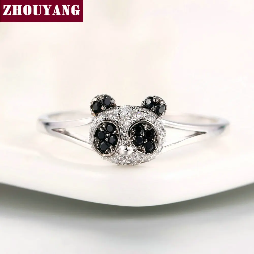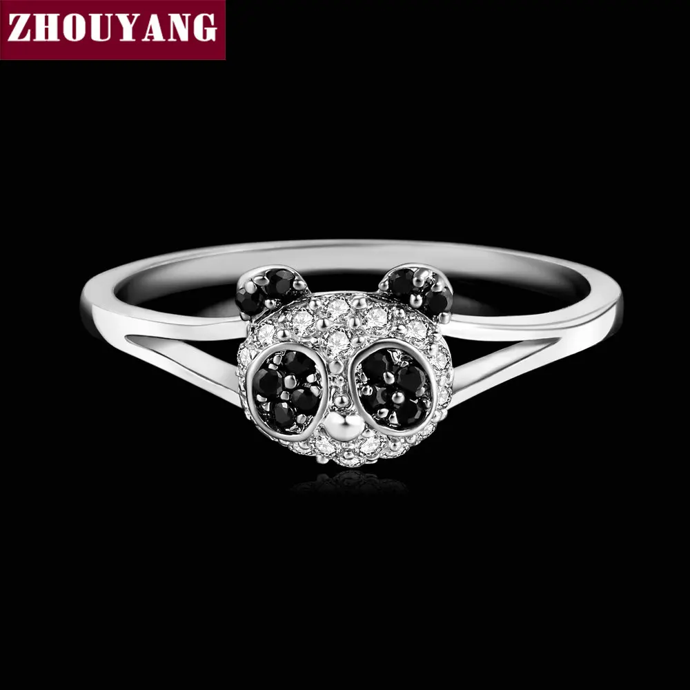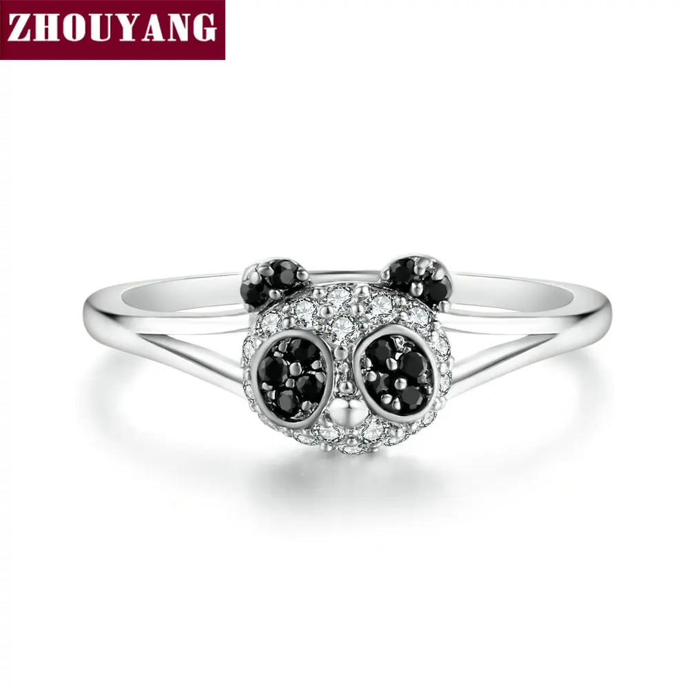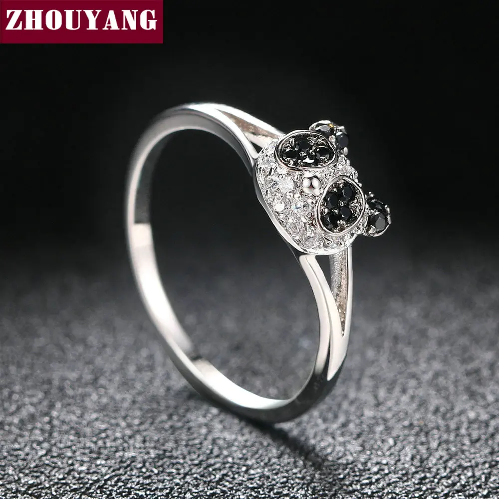 Серебристое кольцо ZYR118 с кристаллами панды головы серебристого цвета, изготовлено из оригинальных австрийских кристаллов всех размеров
