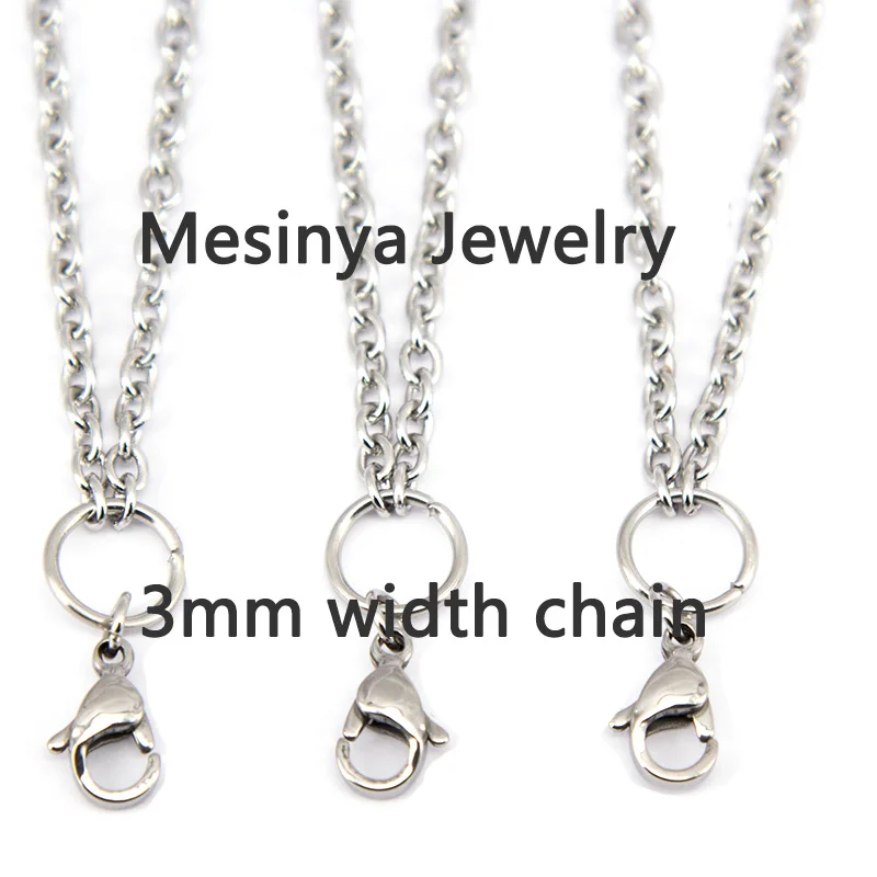 0,8 проволока из нержавеющей стали 316L, ширина 3,0 мм, 30 дюймов, rolo цепь для подвески, подвеска, плавающий стеклянный медальон, любовь, note, keepsake 50 шт.лот