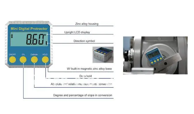 Используется для измерения угла в автомобилях, деревообработке, строительстве, буровой технике и т. Д.