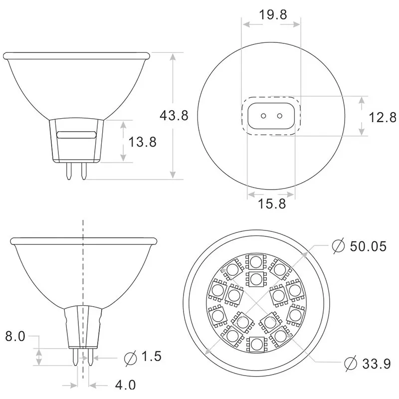 Уточните Источник света 15 шт 5060 SMD Напряжение: 10-30 в 12 В 24 В Люмены: 250-270лм, яркость эквивалентна галогену 25 Вт-30 Вт Размеры: диаметр. 50 мм x h38мм, дополнительный штифт: 8 мм Угол луча: 160 ° Базовый тип: MR16 Потребляемая мощность: 3 Вт С регулируемой яркостью, Surport диммер Цвет: красный, желтый, зеленый, синий, чисто белый, теплый белый Би-полярности, способные