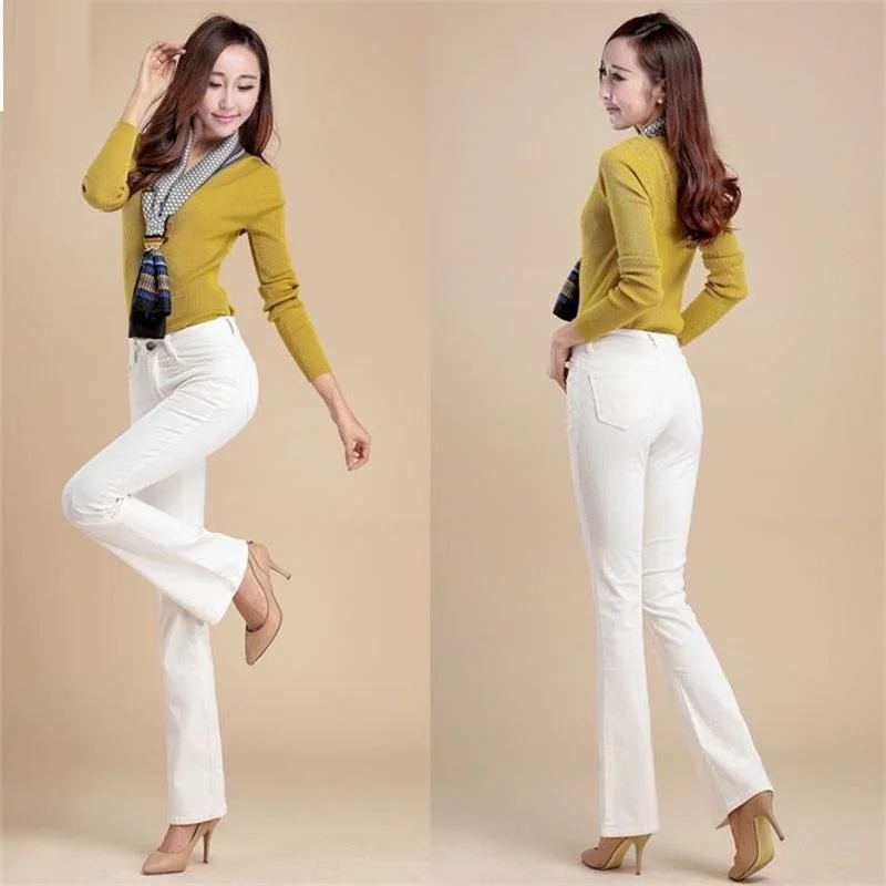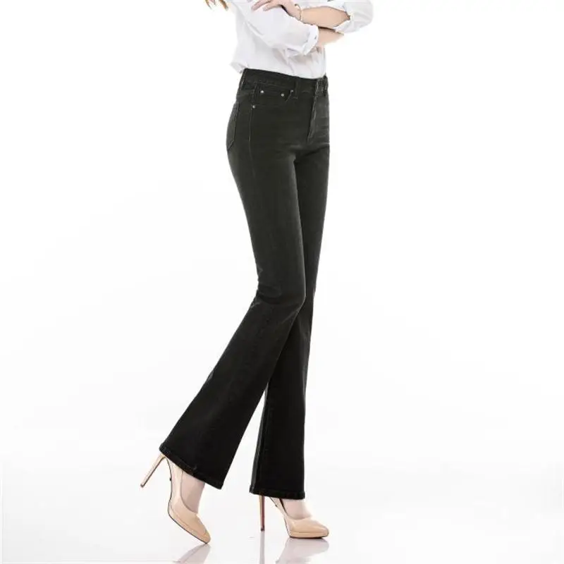 Джинсы женские облегающие со средней талией, модные брюки с поясом-колокольчиком, расклешенные, с ностальгическим рисунком