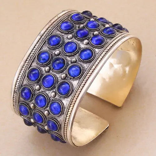 Браслет-манжета из тибетского серебра, с подвеской из синего лазурита и бусин, регулируемый вечерние 6YB00031