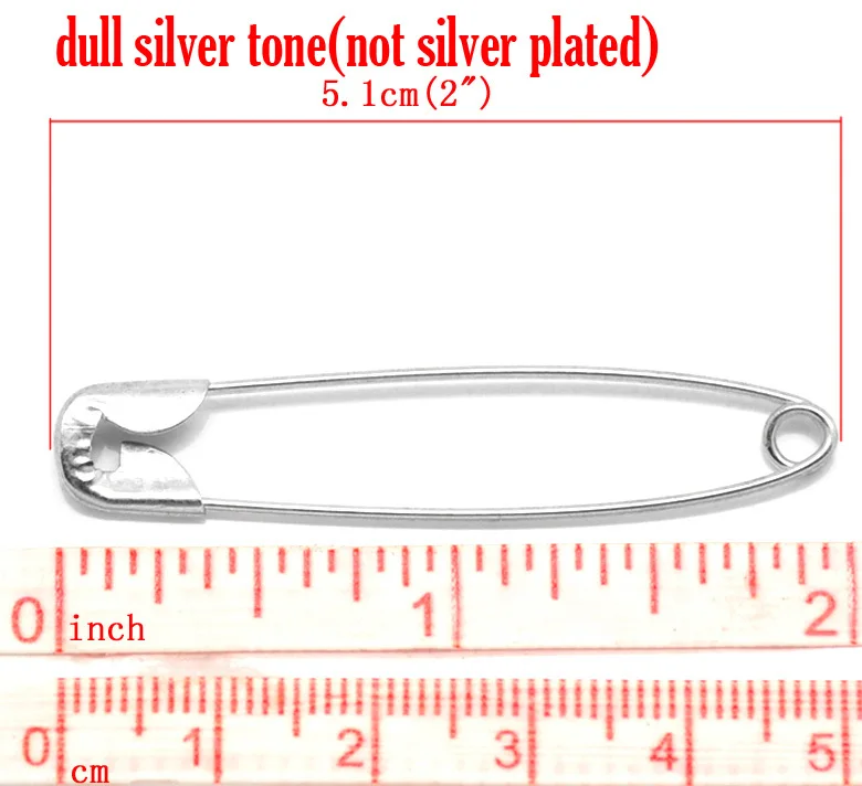 Бесплатно shipping-100PCs Серебряный тон выводы безопасности 5,1x1,1 см (2 "x38"), M00872