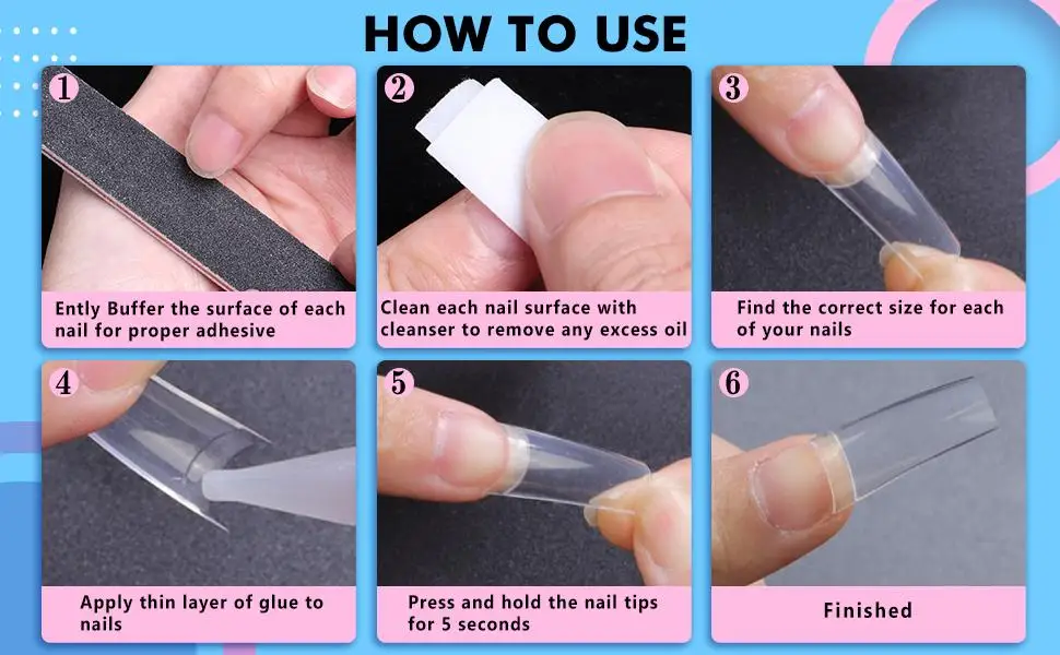 * Высококачественный материал ABS: Прозрачные наконечники для ногтей изготовлены из высококачественного АБС-материала, который является своего рода экологически чистым материалом, не токсичен, не пахнет, не наносит вреда вашим ногтям или телу и делает ногти прочными и естественными.
