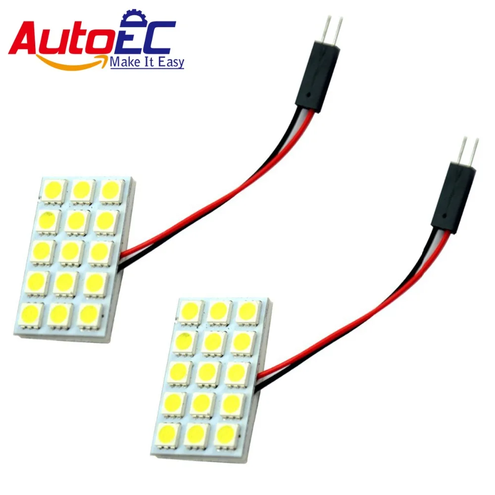 Светодиодная купольная панель AutoEC 100X, 15 SMD 5050, ламсветильник для чтения салона автомобиля, 12 В, белая, синяя, с адаптером Festoon T10, # LL10