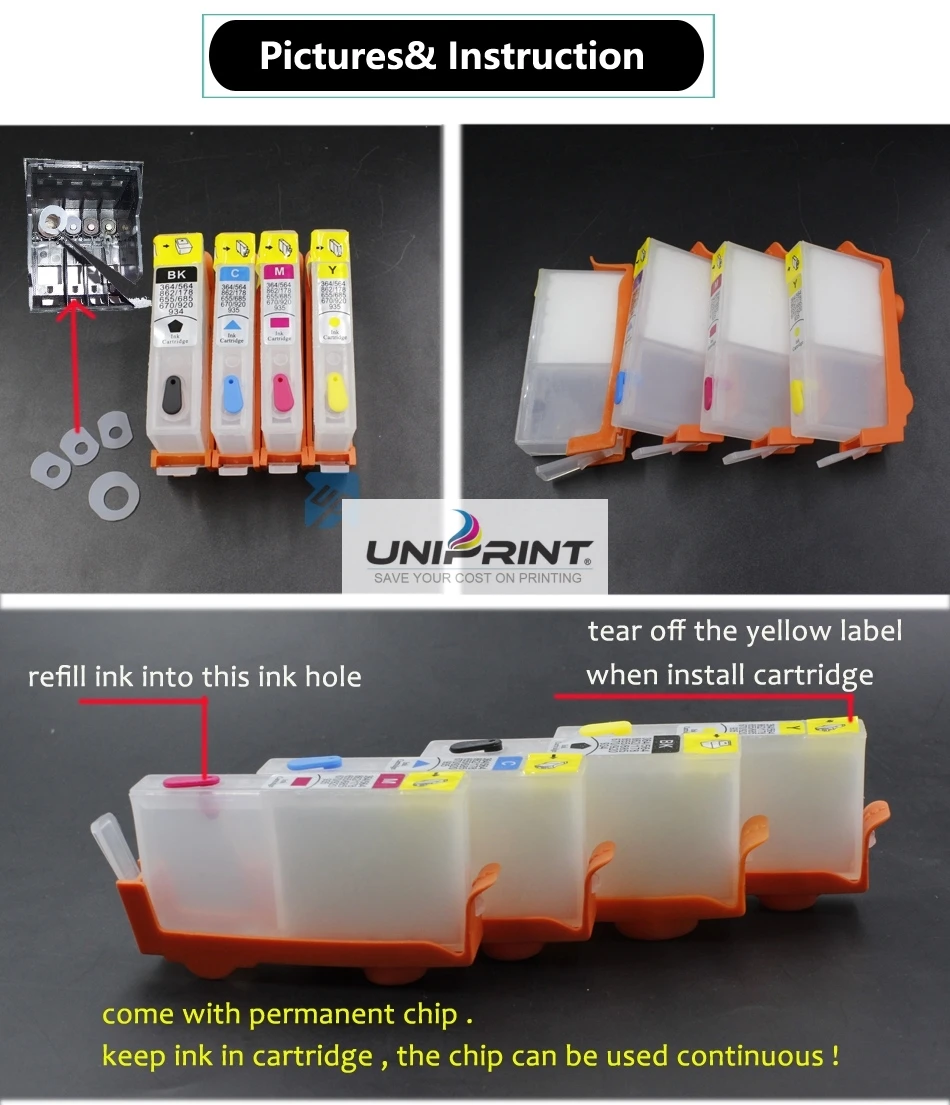 Посылка включает:4 шт. многоразовый чернильный картридж с чипом для 670