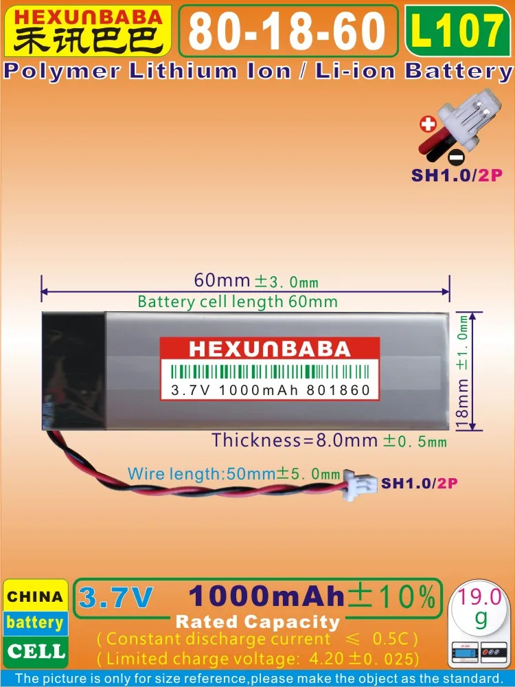 2 шт. L138 3,7 в 1000 мАч 801860 SH1.0mm 2P; Полимерная литий-ионная батарея для GPS,Mp4,Mp3; Записывающая ручка