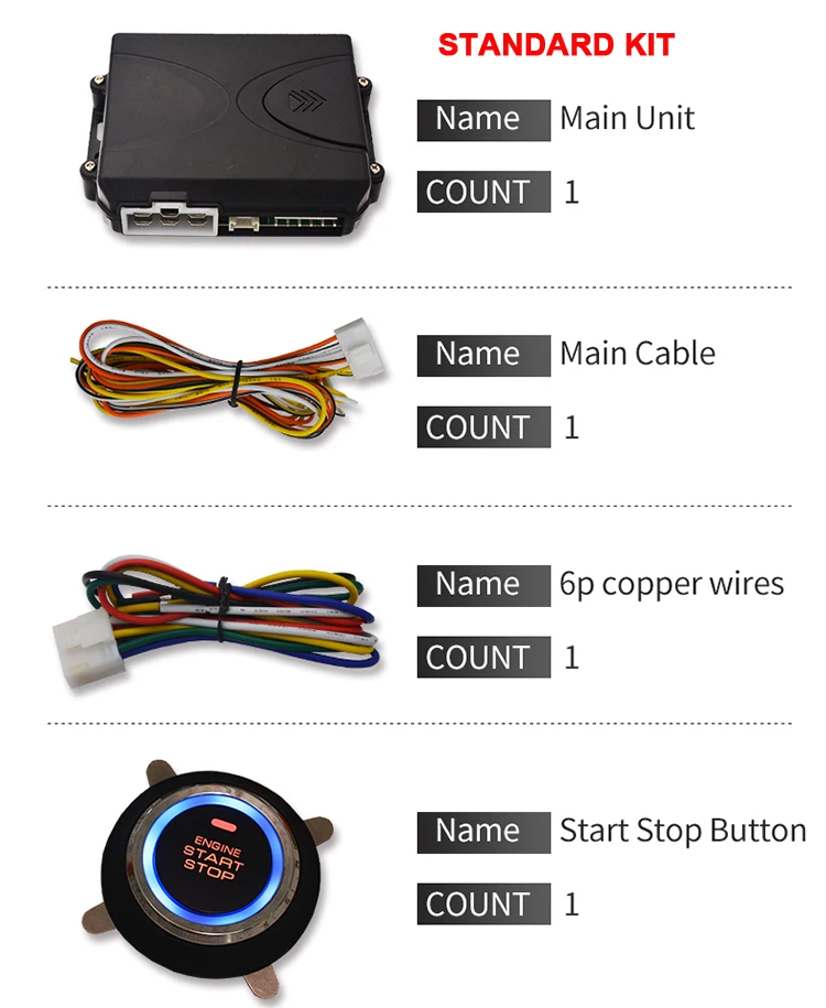 CARDOT 1000PST является пультом дистанционного управления? start stop system, он в основном работает с дистанционным безключевым входом, удаленным центральным замком, автомобильной сигнализацией без функций запуска. Он имеет10? Функции: