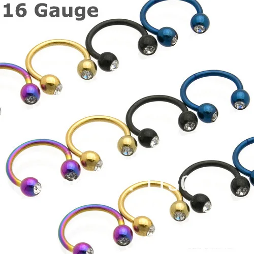 US $6,00/Лот50 шт./лот16 Калибр 1,2*8*3 мм смешанные цвета Титан анодированный Спайк подковы круговой штанга бижутерия для тела