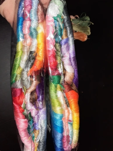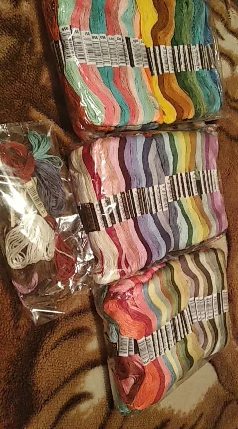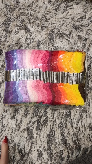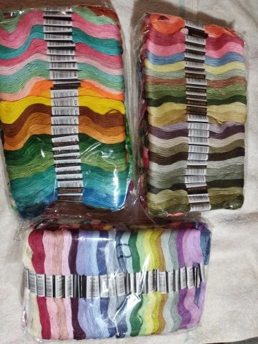 Они красивые! Было бы потрясающе, если бы они прислали больше фиолетовых черных, но в общем они великолепные. Качество не потрясающее, но и не плохое. Они легкие, мягкие и тонкие, но прочные. Я не думаю, что они сломаются, если вы вышите более двух нитей. Этикетки слишком липкие, и нитки прилипают друг к другу. Вы должны разобрать их, вызывая рассыпку и повреждение волокон и оставляя остатки клея, они должны что-то с этим сделать. Я бы определенно купил их снова. Доставка была очень быстрой, но я не знаю, почему они сочетали доставку с другим магазином, Aliexpress никогда не совершала этого раньше. Я не против комбинированной доставки, на самом деле это классно. Что мне не понравилось, так это то, что они не сказали мне, что они собираетесь делать и что они взимают плату за доставку для обоих заказов, даже когда они отправили только одну упаковку. Я думаю, что это неверно взимать плату за каждый товар, а затем сочетать доставку с другим заказом.