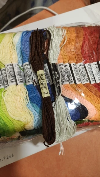 К сожалению товар был задержан на таможне в Германии и до меня не дошёл. Пришлось ждать до окончания срока, почти 3 месяца и открывать спор. Деньги вернули полностью. Продавец очень отзывчивый, уже заказывала раньше у него выборочно нитки. Всё присылает точно по списку. В этот раз это вина таможни. Но заказала всю палитру повторно. Ниточки мне очень нравятся, точно такие как в наборах Joy Sunday. На 14 канве не светят, не путаются и не перетираются, и даже на 18 канве всё еще хорошо ложатся, правда при должном натяжении. Пушатся на кончиках, без нитевдевателя очень трудно вдеть в иглу, но в этом есть плюс, можно вышивать до самого малюсенкого кончика и не боятся что нитка выскочит из иглы. В мотках 8 метров, измеряла.
