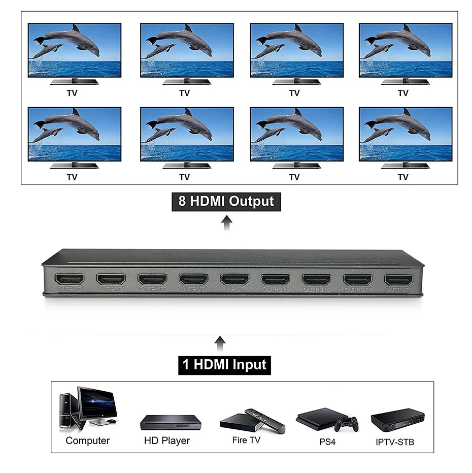 Разветвитель 4K HDMI 1X8 порт распределяет 1 HDMI-источник на 8 HDMI-дисплеев одновременно HDMI 1,4 в 3840X2160P30 Гц