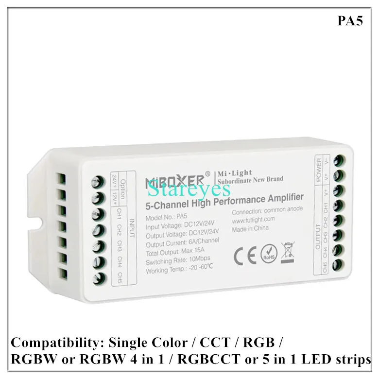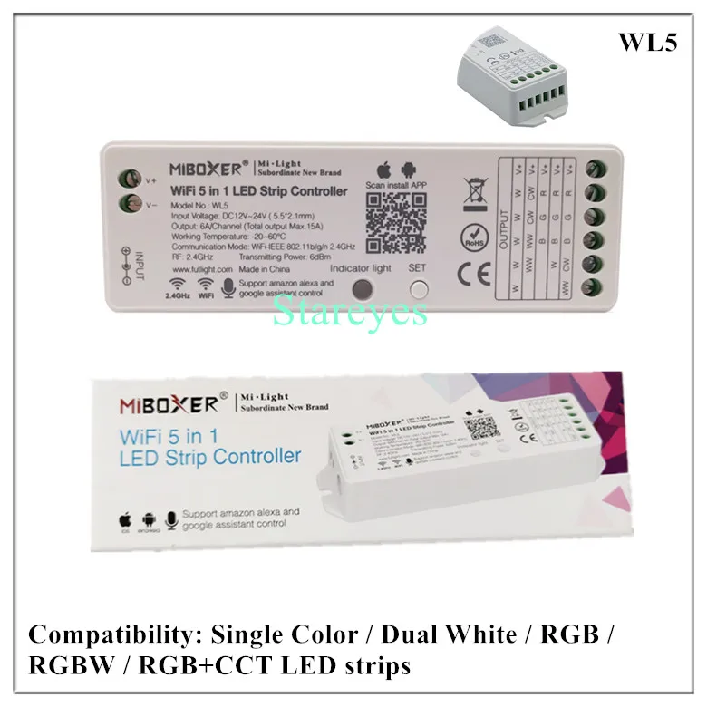 Совместимость: одноцветный, двойной белый (CCT), RGB, RGBW или RGBW 4 в 1, RGBCCT или 5 в 1 светодиодный
