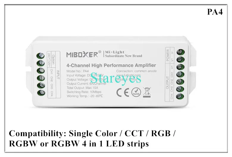 Название продукта:Ми-светильник 2,4 ГГц 4 зоны RGBW Светодиодные ленты контроллер
