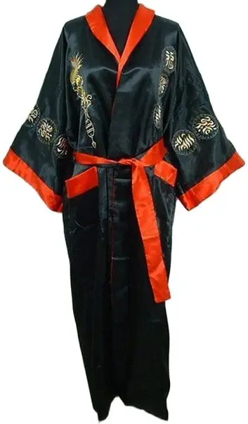 Двусторонний женский халат в китайском стиле, красный и черный цвета, пижама, двустороннее шелковое атласное кимоно с вышивкой драконов, один размер, S0004