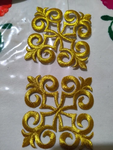 Очень красивый патч, без проводов. Очень хорошо вышитый, очень золотой цвет, будет прост в использовании благодаря нагревающему клею. Быстро отправлено. Я рекомендую это. Спасибо, спасибо.