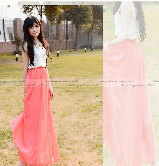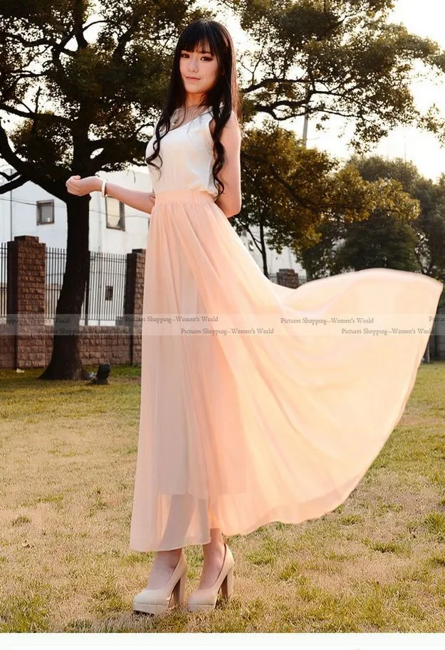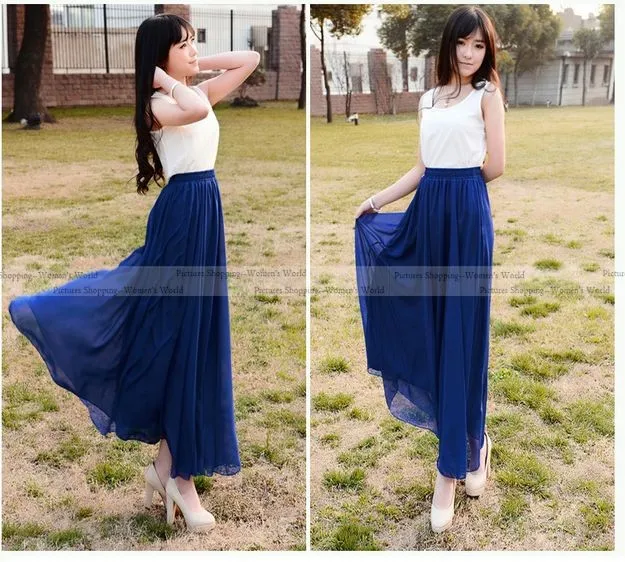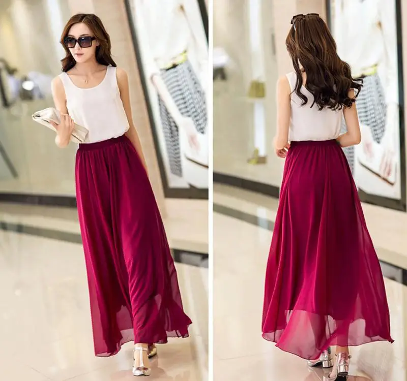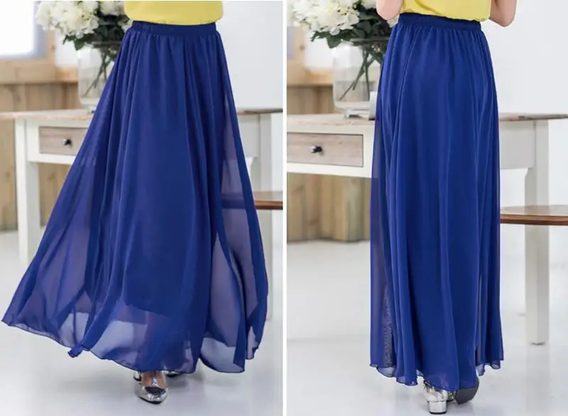 Юбка-макси женская шифоновая, с высокой талией, 8090100 см, 22 цвета, на летоосень, 2020