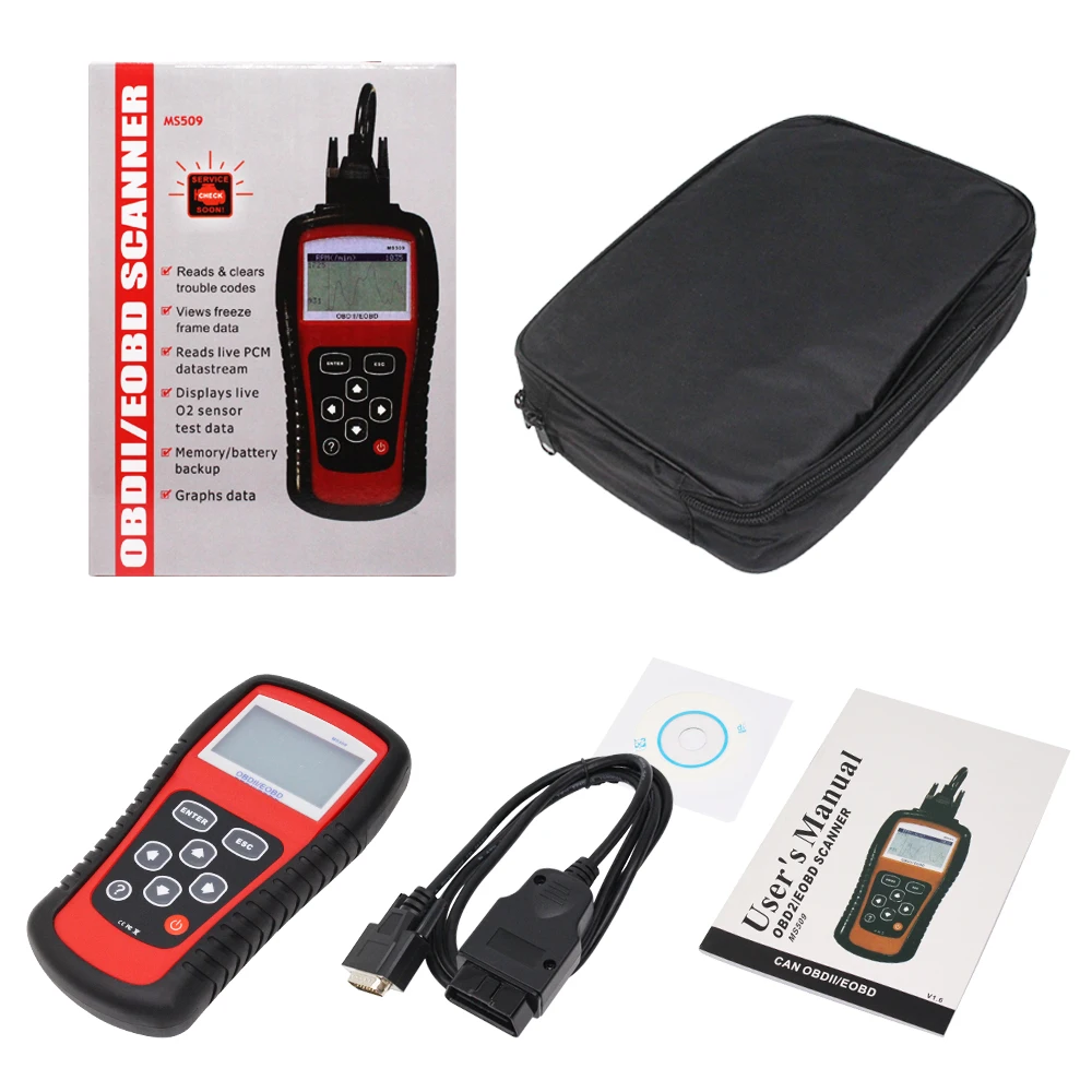 Считыватель кодов MS509 OBDII/EOBD поддерживает все Девять режимов тестирования OBDII на всех транспортных средствах, совместимых с OBDII EOBD, чтобы позволить техникам и домашним пользователям точно диагностировать даже самые сложные проблемы. Утонченный, но простой в использовании, этот ручной инструмент для сканирования обеспечивает быстрый и легкий доступ к кодам неисправностей EOBD на базе двигателя, инструмент с поддержкой CAN дает ясность, лаконичные определения DTC на большом ЖК-экране с подсветкой извлекает общие коды P0, P2 и P3 и U0 для выбросов двигателя, а также выбирает конкретного производителя P1, Коды P3 и U1, выключает светильник MIL, хранит данные о замораживании для более поздней оценки, а также отображает состояние готовности монитора и ввода/м.
