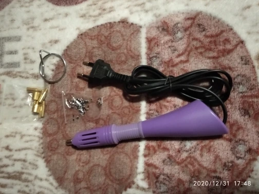 Паяльник хороший. Быстрый нагрев, 7 насадок разного диаметра. Подставку не положили, но положили пакетик со стразиками. Продавцу спасибо за быструю отправку.