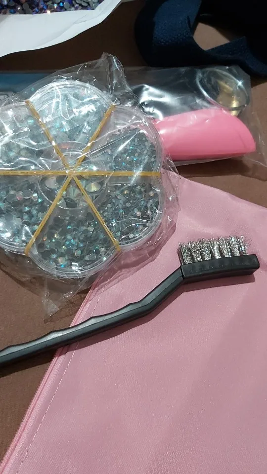 Посылка шла с месяц. Пояльник работает, греется, в комплекте несколько насадок разного размера. Испытали, стразы приклеил. Спасибо за товар.