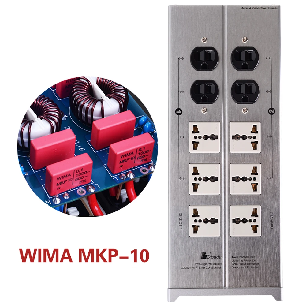 (Для усилителей, для источника и предварительного усилителя, других выходов без фильтров)Раздельное управление переключателем питанияПрофессиональные розетки и толстые медные Пружинные пластины для плотного соединения и меньшего потериКонденсатор WIMA фильтр и Индуктивный конденсаторный фильтрШасси из тяжелого алюминиевого сплаваЗащита от ударов грома и перегрузкиСъемный кабель питания