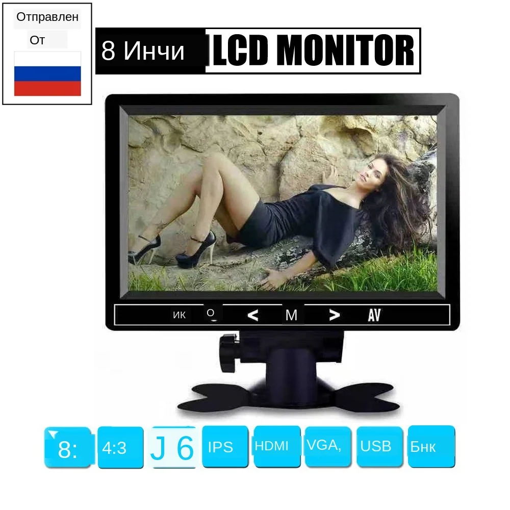 Цветной ЖК-монитор для видеонаблюдения, 8-дюймовый TFT монитор с HDMI, VGA, BNC, AV входом для ПК, системы видеонаблюдения, вращающийся экран с подставкой