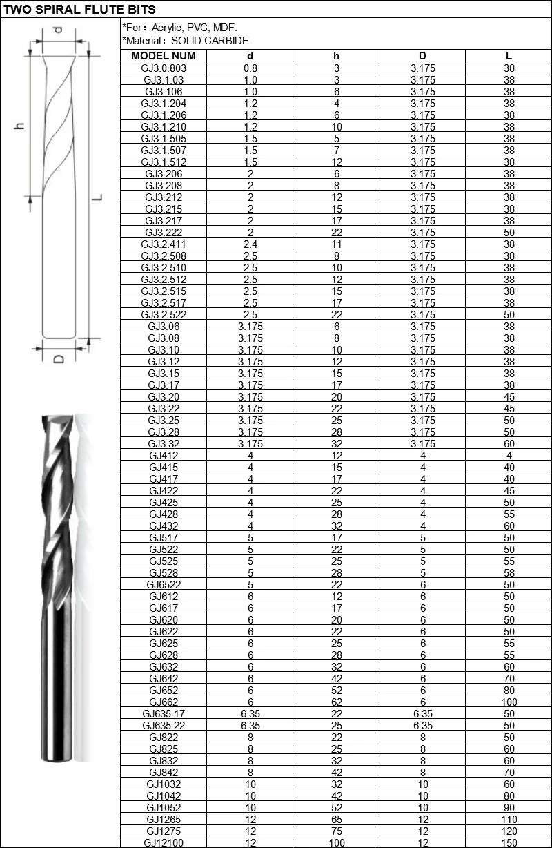 Твердосплавная двойная флейта Sprial бит/две флейты sprial Биты