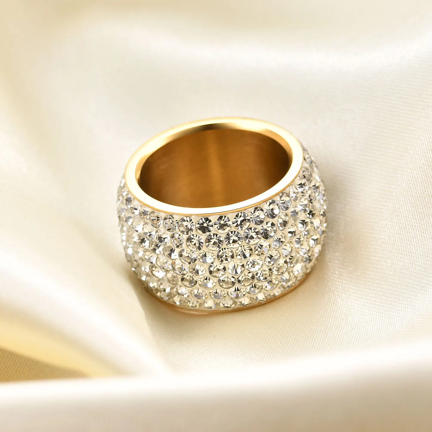 Оптовая продажа, блестящие кольца с полной стразы для женщин, роскошное Ювелирное кольцо золотого цвета с кристаллами
