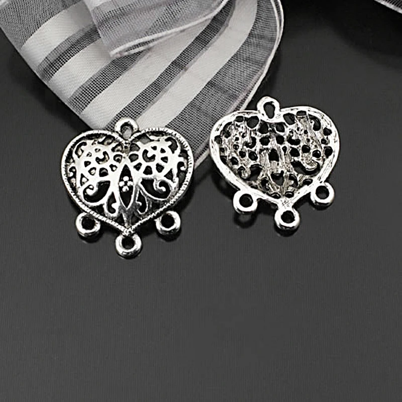 Оптовая продажа, антикварные серебряные серьги 20*19 мм в форме сердца, подвески из сплава с подвеской на голову, DIY модные ювелирные изделия, 30 шт. (JM2391)