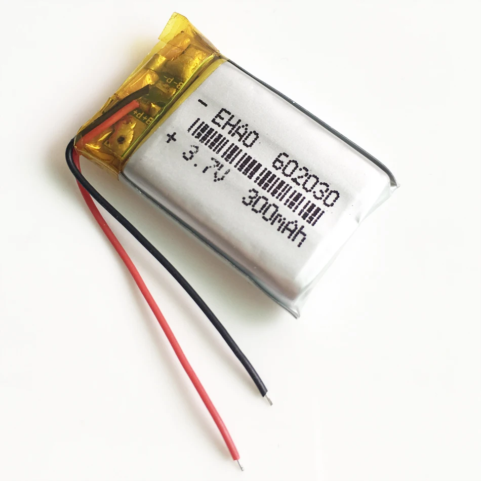 Посылка включает:1xpcs 3,7 v 300mAh 602030 литиевая полимерная аккумуляторная батарея.