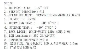 IPS 1,9 дюймов HD TFT ЖК-дисплей Цвет Экран