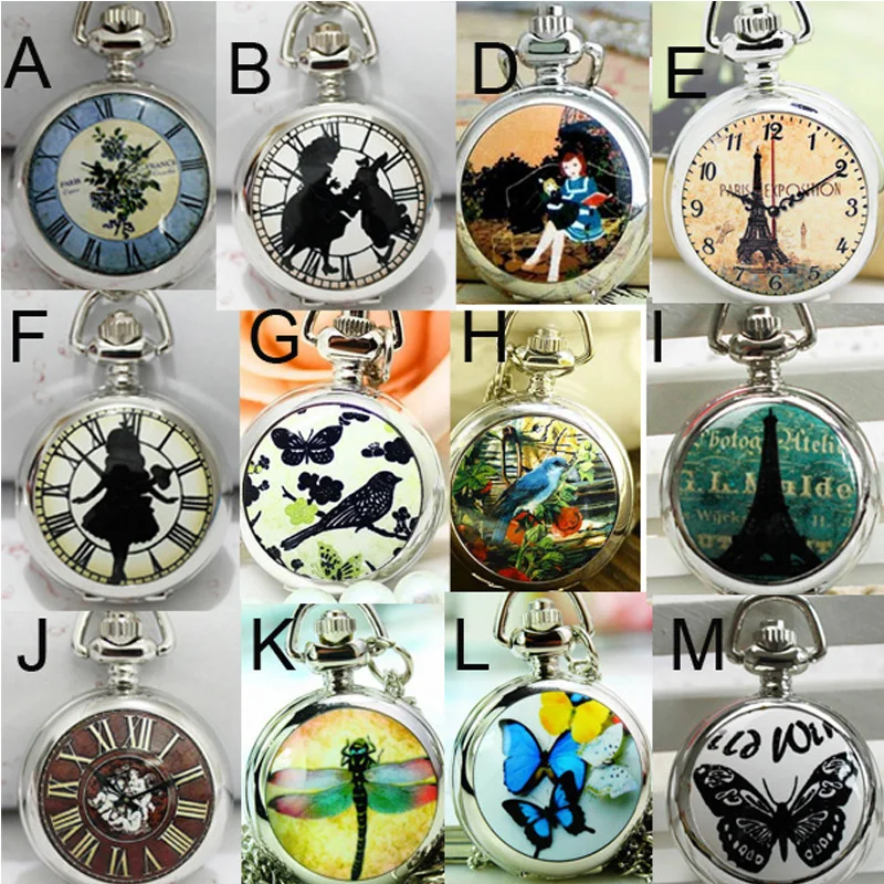Оптом Алиса в стране чудес Эйфелева башня часы ожерелье зеркало карманные часы