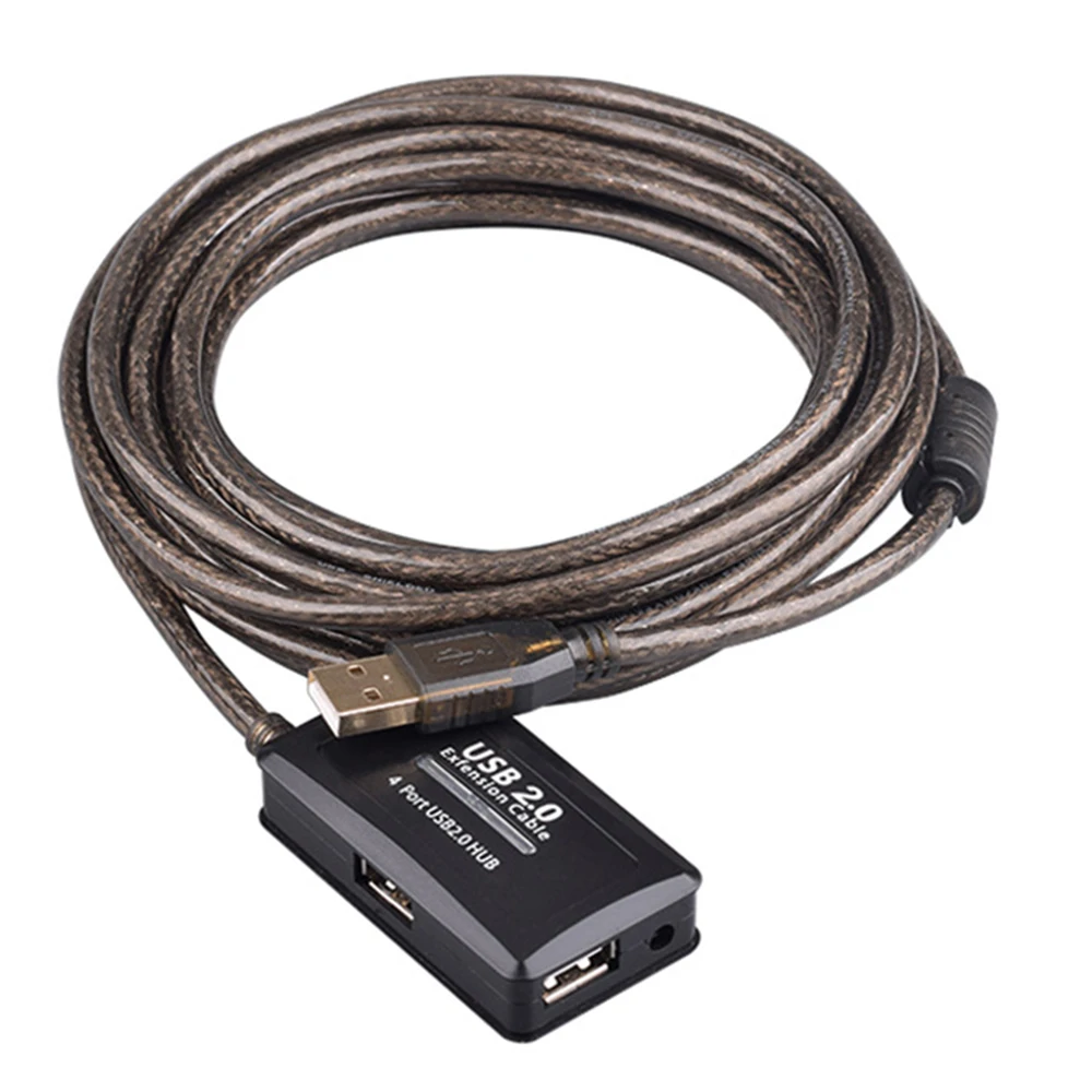 Активный Удлинительный кабель USB 2,0, 10 м, 4 порта, с портом питания и ферритовыми сердечниками для компьютера, ПК, ноутбука, USB