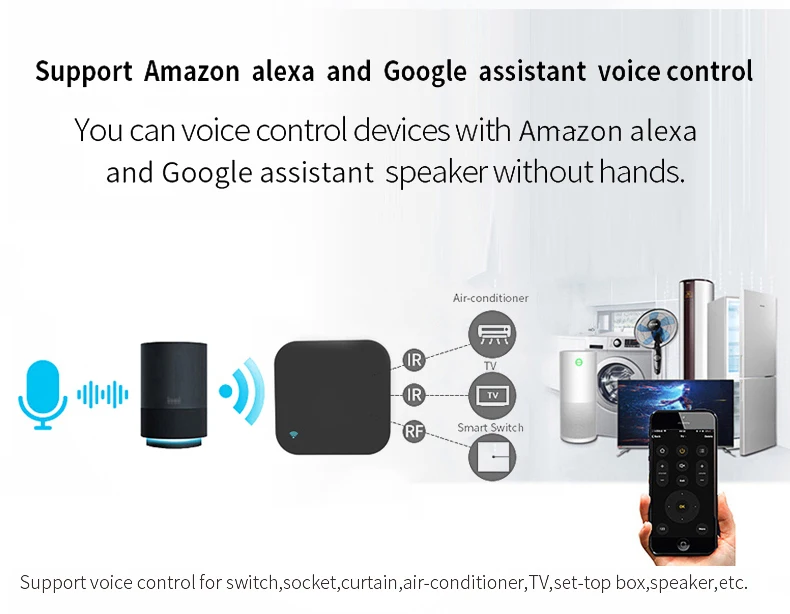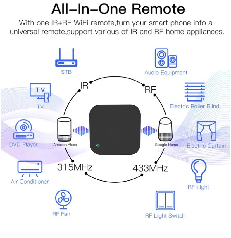 Умный ИК и Радиочастотный пульт поддерживает все инфракрасные пульты и не скользящие радиочастотные пульты кодирования.